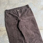 Vintage carhartt brown WOMENS double knee work wear carpenter pants. Sweet pair. Feel pretty new. Measure 32x30 and a 8.75 leg opening. Please check measurements before purchasing. I do my best to show any flaws in pictures. Quick shipping! Bundles encouraged! @ants_haul on Instagram. 476!!!