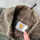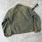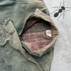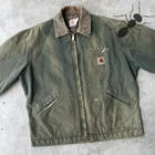 Vintage JB0866 FADED DISTRESSED green carhartt detroit work wear jacket. Amazing wear on this one. Top tier Detroit. Sleeves are distressed and some more distress throughout. Has fading. Measures 26x27.5. Size tag is missing but I would imagine this was tagged a large tall originally. Please check measurements before purchasing. I do my best to show any flaws in pictures. Quick shipping! Bundles encouraged! @ants_haul on Instagram.