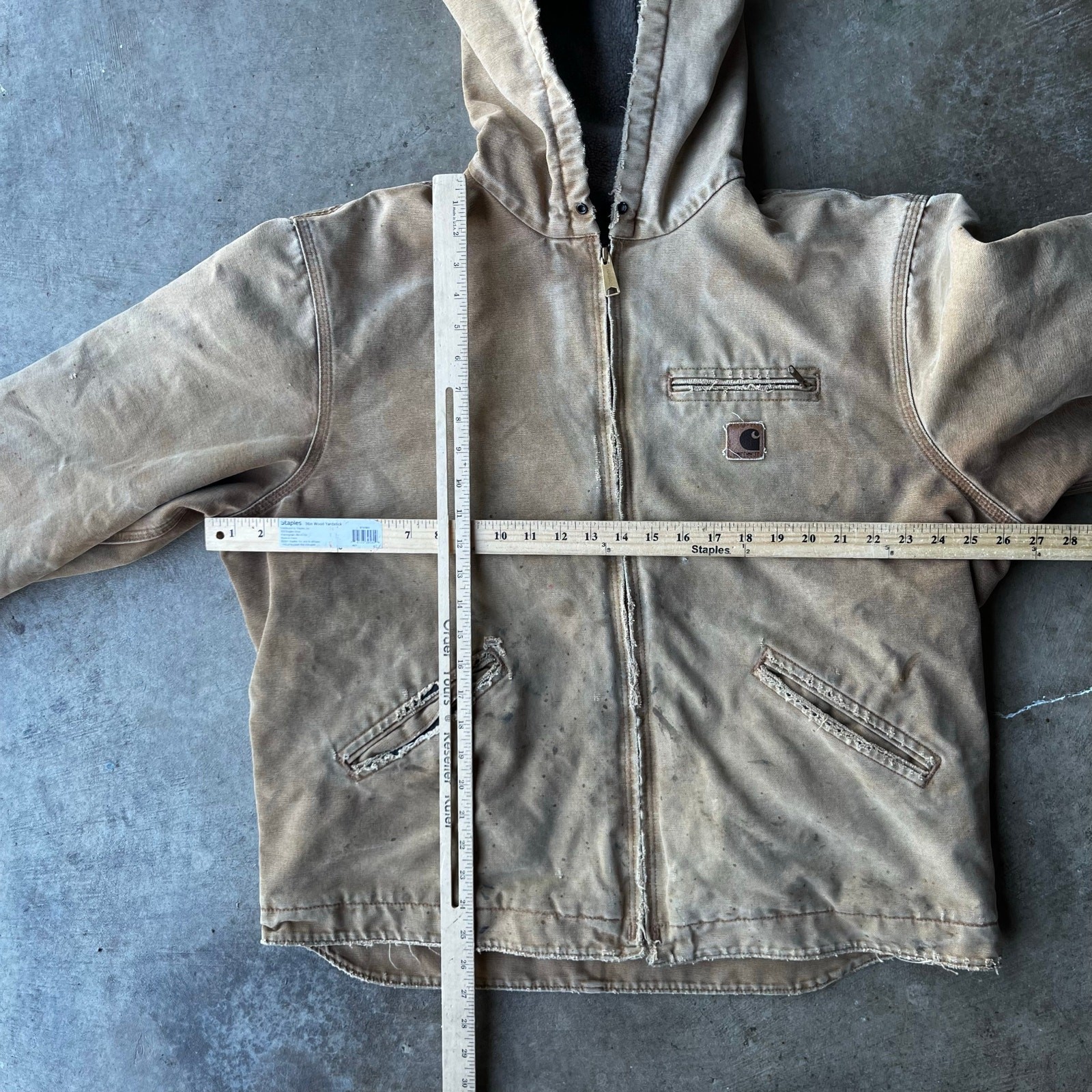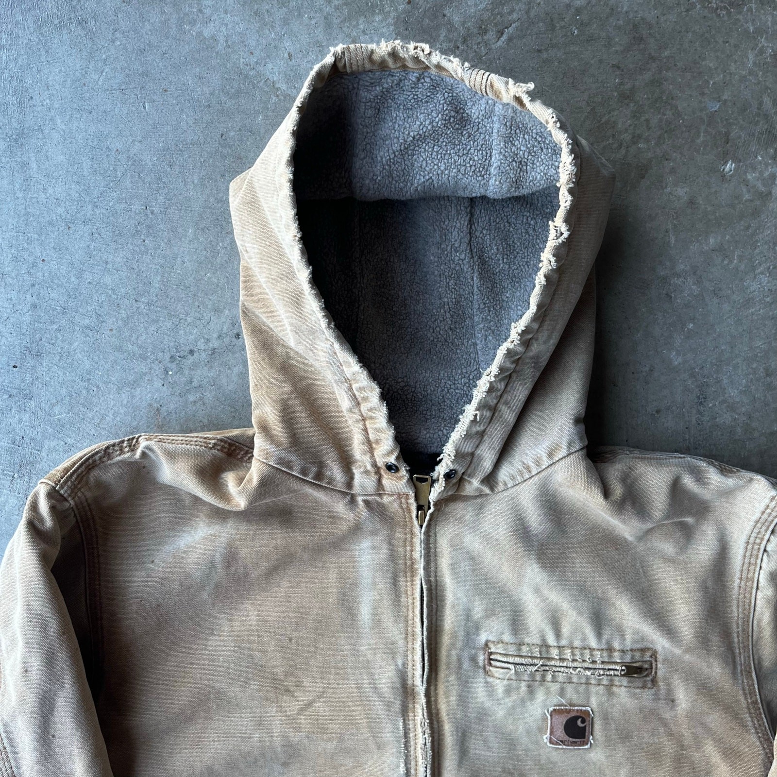 VINTAGE Carhartt Jacket Mens XL Tan Canvas Detroit Sherpa Line J141 BRN Hood beautiful color measurements, and tag shown in pictures item is preworn and may have defects shipping every wednesday and sunday