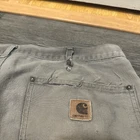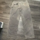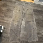 Vintage Carhartt Carpenter Gray Double Knee Pants Size Faded Distressed USA Great Look VTG Incredible Fade, Wear, Stains, Fray & Distressing with paper clips holding pocked and one belt loop amazing wear #carhartt #doubleknee