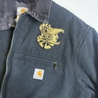 This Vintage Carhartt Jacket is a classic Detroit J01 model in navy blue, featuring a canvas outer shell and lined interior for added warmth. With a size large and regular fit, this bomber jacket is perfect for men looking for a stylish and durable outerwear option. Made by the renowned brand Carhartt, this jacket combines quality craftsmanship with a timeless design that is both functional and fashionable. Perfect for any wardrobe, this vintage Carhartt jacket is a must-have for any man who appreciates quality and style. Vintage Carhartt Jacket Mens 44 Large Detroit J01 navy Canvas Blanket Lined USA Custom Aztec Patch Size L Length 25 Chest 24