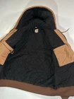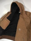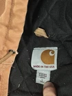 Vintage Carhartt J140 BRN Hooded Canvas Jacket Size Large Tall Quilted Distressed USA Very decent - to - okay condition overall - solid distressed Carhartt jacket - see ALL photos very closely See photos for measurements Jacket has moderate - to - heavy wear/tear overall throughout - some moderate - heavy discoloration/fade - jacket has lots of marks/spots - dirty wear - mild stains - paint marks - common moderate stress throughout both sides - etc - solid vintage distressed marked up jacket - some overall basic stress throughout - see ALL photos very closely for condition of the jacket Will ship with care