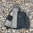 The Vintage Carhartt J141 BLK Jacket is a classic hooded jacket in Adult XL size, featuring a solid black color and a durable cotton outer shell. The jacket is lined with cozy polyester material and equipped with a zipper closure for convenience. Perfect for travel, casual wear, or workwear, this Y2K era piece exudes a rugged grunge aesthetic with a touch of outdoor-inspired flair. Made by the reputable brand Carhartt, this vintage jacket is a timeless addition to any wardrobe, ideal for those who appreciate quality and style. No holes or stains. Perfect amount of wear giving the jacket a great look See pictures for pictured measurements compare with your favorite garment and ask questions if you have any Add to your collection today Browse my other items I can combine shipping