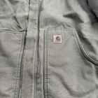Heavy wear on sleeves - min holes on back of arms cuff is torn through outer fabric - please see pictures The VTG Carhartt Arctic Jacket in Men's size 2XL is a durable and stylish outerwear piece perfect for casual or workwear occasions. Made with cotton canvas fabric and featuring a solid green color, this mid-length jacket is lined with Sherpa for added warmth during the colder seasons. The jacket has a zip closure, is machine washable, and includes zipper and logo accents for added detailing. Ideal for activities like walking, school, hunting, work, and hiking, this Carhartt Arctic Jacket combines functionality with a classic overcoat style.