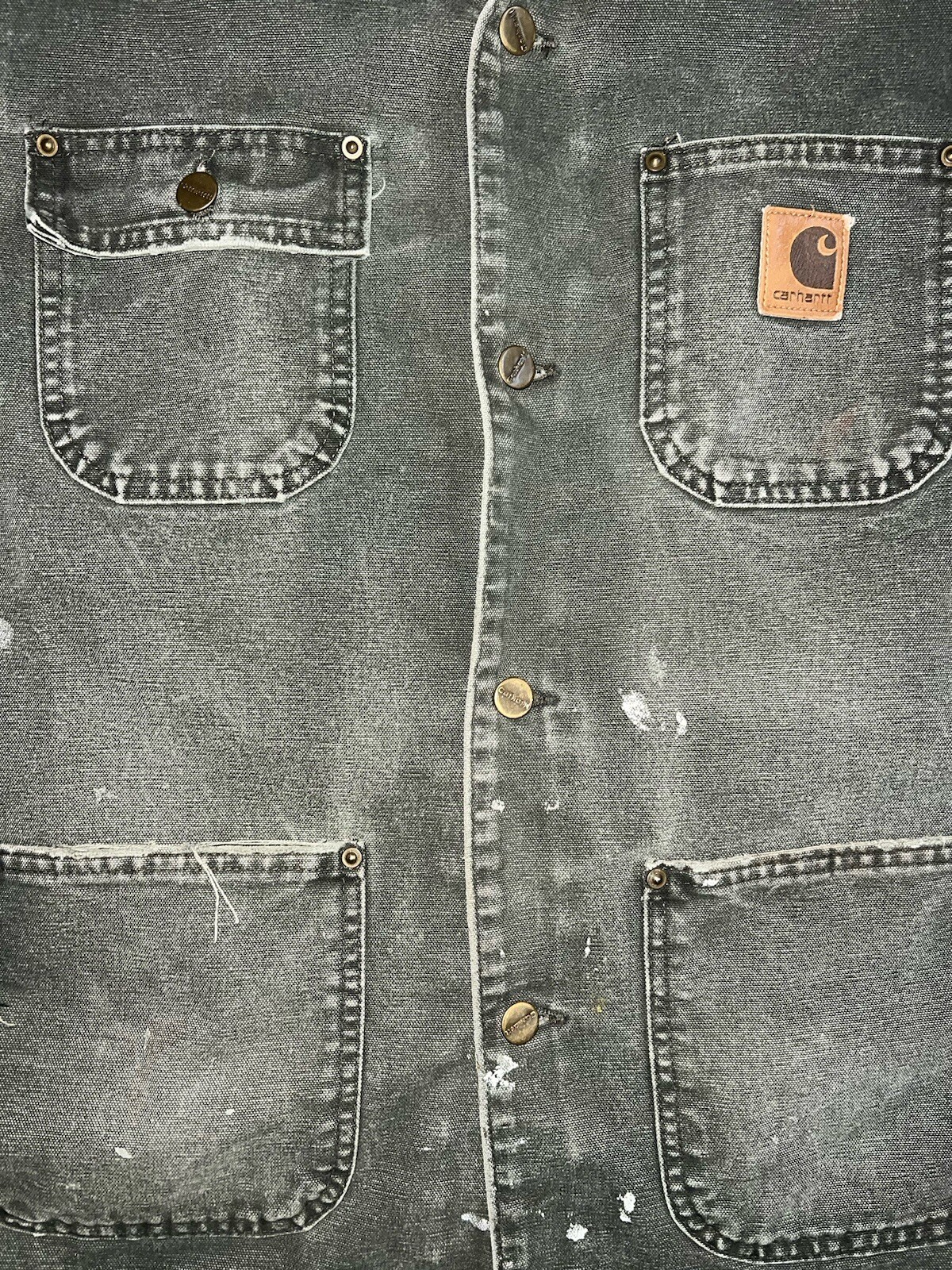 The Carhartt Vintage C02 MOS Large Canvas Blanket Lined Chore Jacket is a stylish and functional outerwear piece for men. Made from durable cotton canvas with a lined interior, this mid-length jacket is perfect for winter, fall, and spring seasons. The jacket features a button-down collar and closure, with accents like branded buttons and logos adding a touch of vintage charm. Ideal for casual wear, travel, or work, this Carhartt jacket is a versatile and timeless addition to any wardrobe.
