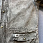 *Please review all photos and measures closely before purchase due to jacket NOT HAVING SIZE TAG and also having fuzz piling on interior blanket lining as well as numerous stains and color faded spots on front and back fabric in arms, front body and back of jacket as well as a handful of distress holes and marks in various areas from age and heavy use. Zipper does function and interior drawstring at waist is present. Measures are below ⬇️ Pit to Pit 29” Length 35” Sleeve length 37” This Vintage Carhartt Quilted Lined chore field barn Coat Jacket is a classic piece for men, featuring a solid brown color and a long length suitable for casual or workwear occasions. Made with durable cotton canvas material, this jacket is lined with synthetic insulation for warmth in various seasons. The vintage design from the USA brand Carhartt adds a touch of nostalgia to this timeless wardrobe staple, perfect for walking and outdoor activities. Oilfield Distressed Faded Stained Worn Classic Duck Canvas Field Coat Chore Coat Barn Coat Utility Heavy Warm Durable Classic Industrial Welder Pipeline Roustabout Rig Up Heavy Equipment Warehouse Manufacturing Trucker Corduroy Collar Lined Warm 90s Y2K tattered distressed worn
