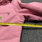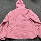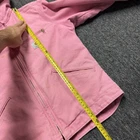The Vintage Carhartt Women's Sherpa Lined Hooded Jacket in rare pink is a unique and stylish piece perfect for the winter, fall, and spring seasons. This classic jacket features a zip closure, sherpa lining for added warmth, and a solid pink color with a vintage appeal. The hooded design and basic jacket style make it versatile for outdoor activities or everyday wear, showcasing the brand's rugged and timeless aesthetic. Made by Carhartt, this piece is a must-have for any woman looking for a quality and fashionable outerwear option. has minor stain spots as shown