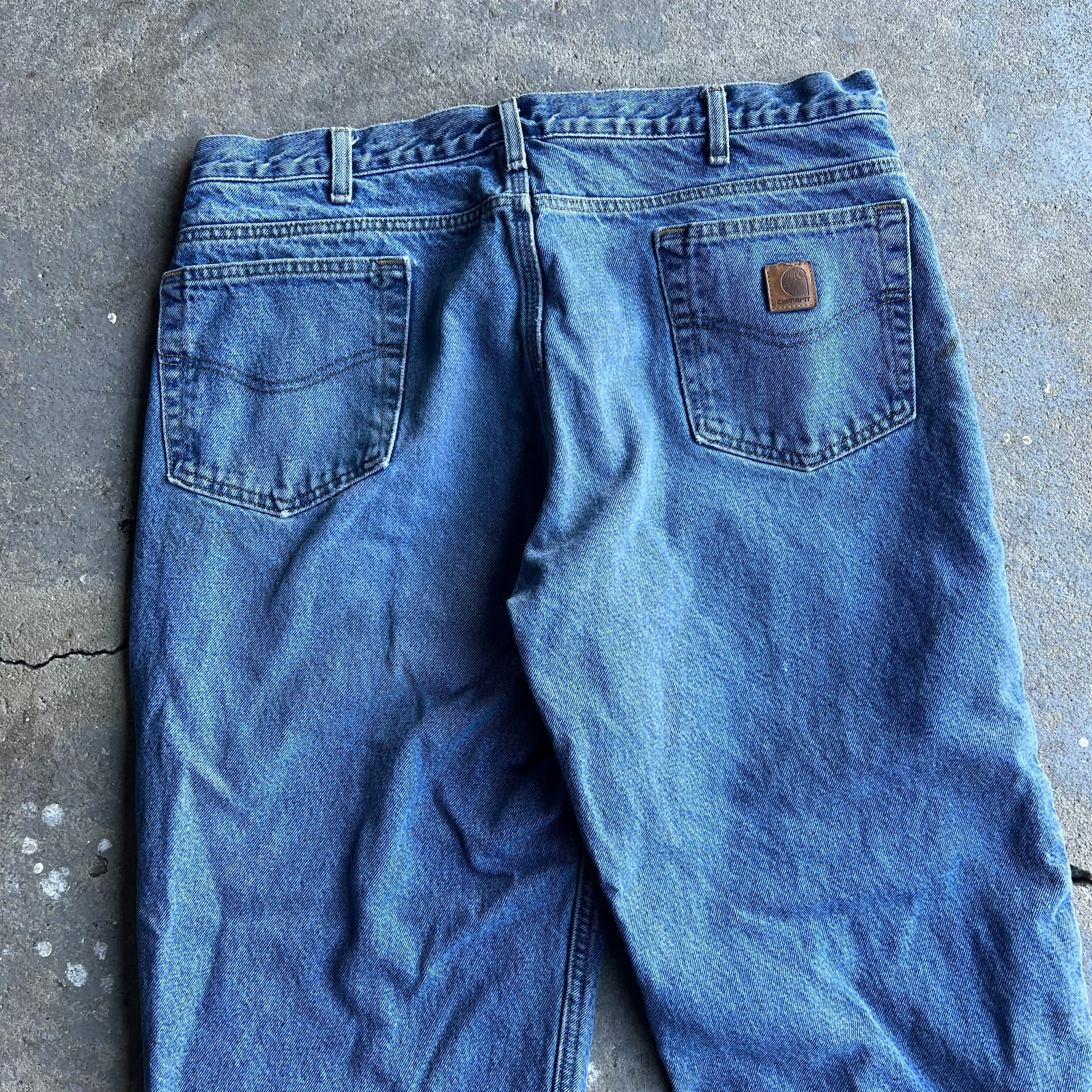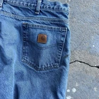 Vintage carhartt flannel lined denim blue jeans work wear carpenter pants. Good pair! Measure 36x29.5 and a 9.25 leg opening. Please check measurements before purchasing. I do my best to show any flaws in pictures. Quick shipping! Bundles encouraged! @ants_haul on Instagram. 357!!!