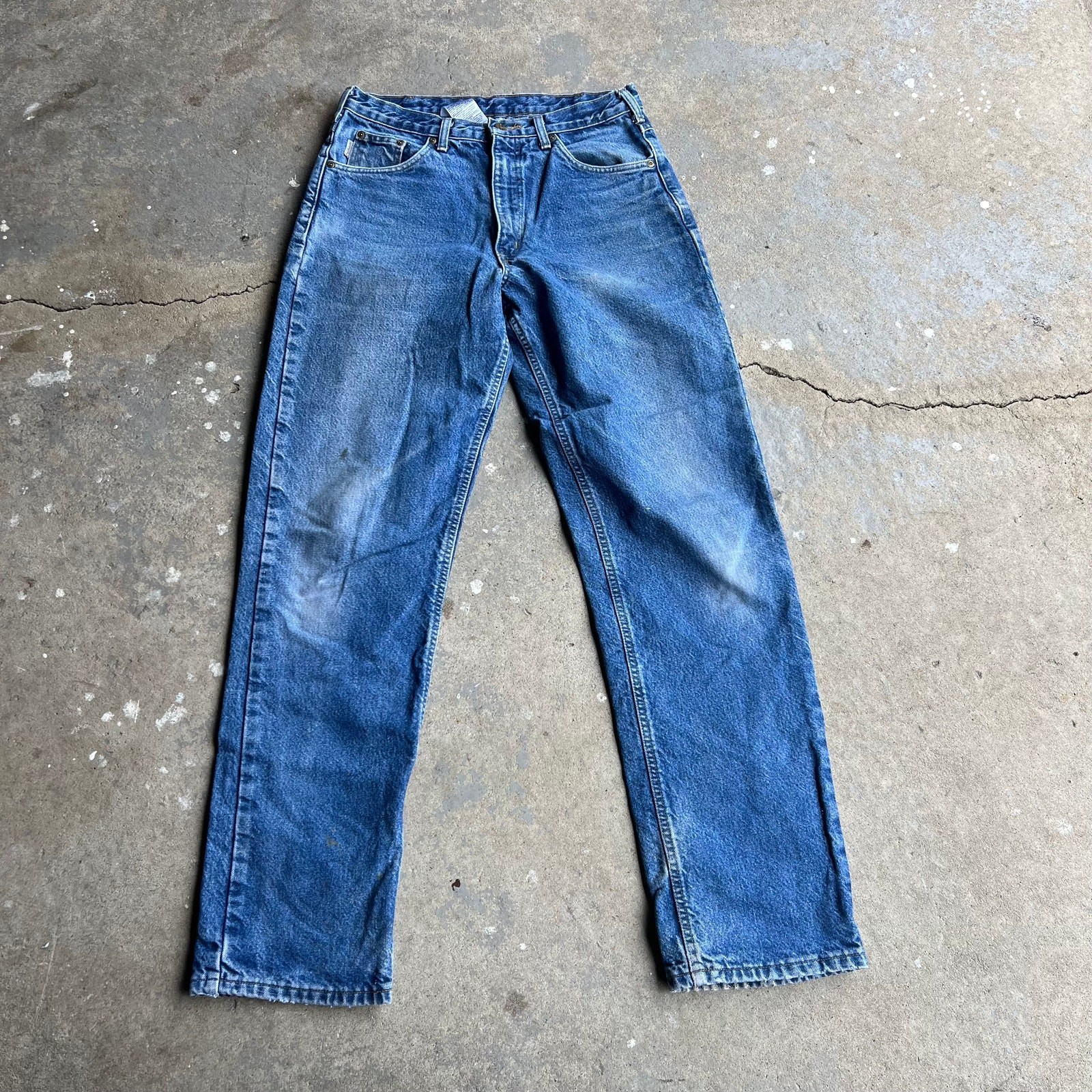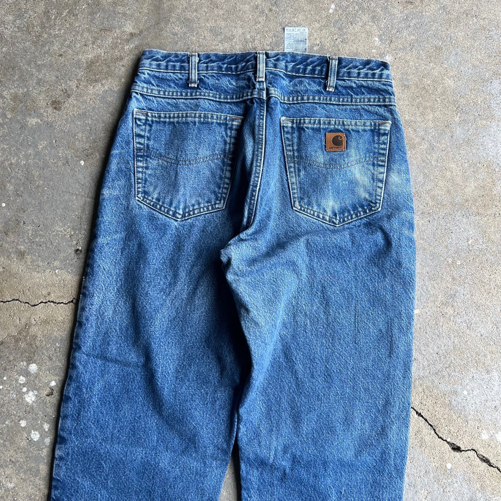 Vintage carhartt flannel lined denim faded blue jeans work wear carpenter pants. Great pair. Measure 32x34 and a 8.75 leg opening. Please check measurements before purchasing. I do my best to show any flaws in pictures. Quick shipping! Bundles encouraged! @ants_haul on Instagram.