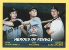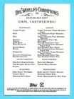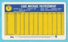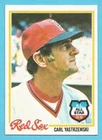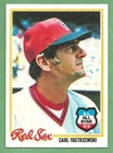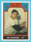 CARL YASTRZEMSKI Baseball Singles & Inserts (PLEASE NOTE: Most of the cards from 1969 thru 1980 do have some wear and most range in the VG-EX condtion). The 2005 Sweet Spot Wingfield Classics Collection #WCC10 is a oversized 5"x7" card. The 1986 TCMA Red Sox Greats #9 does have a small creases about 1/2" on both the Left and Right sides in the middle area but does'nt extend across the whole card. Shipping in the United States is $1.50 for the first item and free for any additional items in any of my Complete Your Set categories, any cards shipped outside the United States is $15.00 per order and this covers all cards purchased. If you need a picture of a card or have any questions please feel free to e-mail me. Thanks, Derek