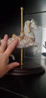 This beautiful figurine captures the magic of a vintage carousel horse, crafted by The Franklin Mint in 1987. The intricate details and fine craftsmanship of this porcelain collectible make it a stunning addition to any collection. The horse's majestic presence and graceful stance embody the timeless allure of carousel art. The Lynn Lupetti designed figurine is part of the Carousel Horse collection and is a testimony to the quality of The Franklin Mint. With a brand of such prestige and significance, this piece is sure to attract collectors and enthusiasts alike. Its material and manufacture year give a glimpse into the history of this stunning piece. So, don't miss out on the opportunity to own this vintage collectible!