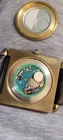 100% Authentic Cartier with enamel Roman numerals and blue cabochon crown. . A great idea , made of a vintage Cartier tank Obus mini desk clock we just put a fresh battery in it and runs perfect metal not gold and finely aged lots of compliment when worn, looks like a 50 k $ watch you see it you Love it, please read and see all large size pictures and the size and make sure of your purchase genuine Cartier international service suede pouch included
