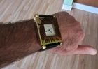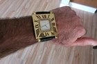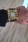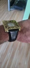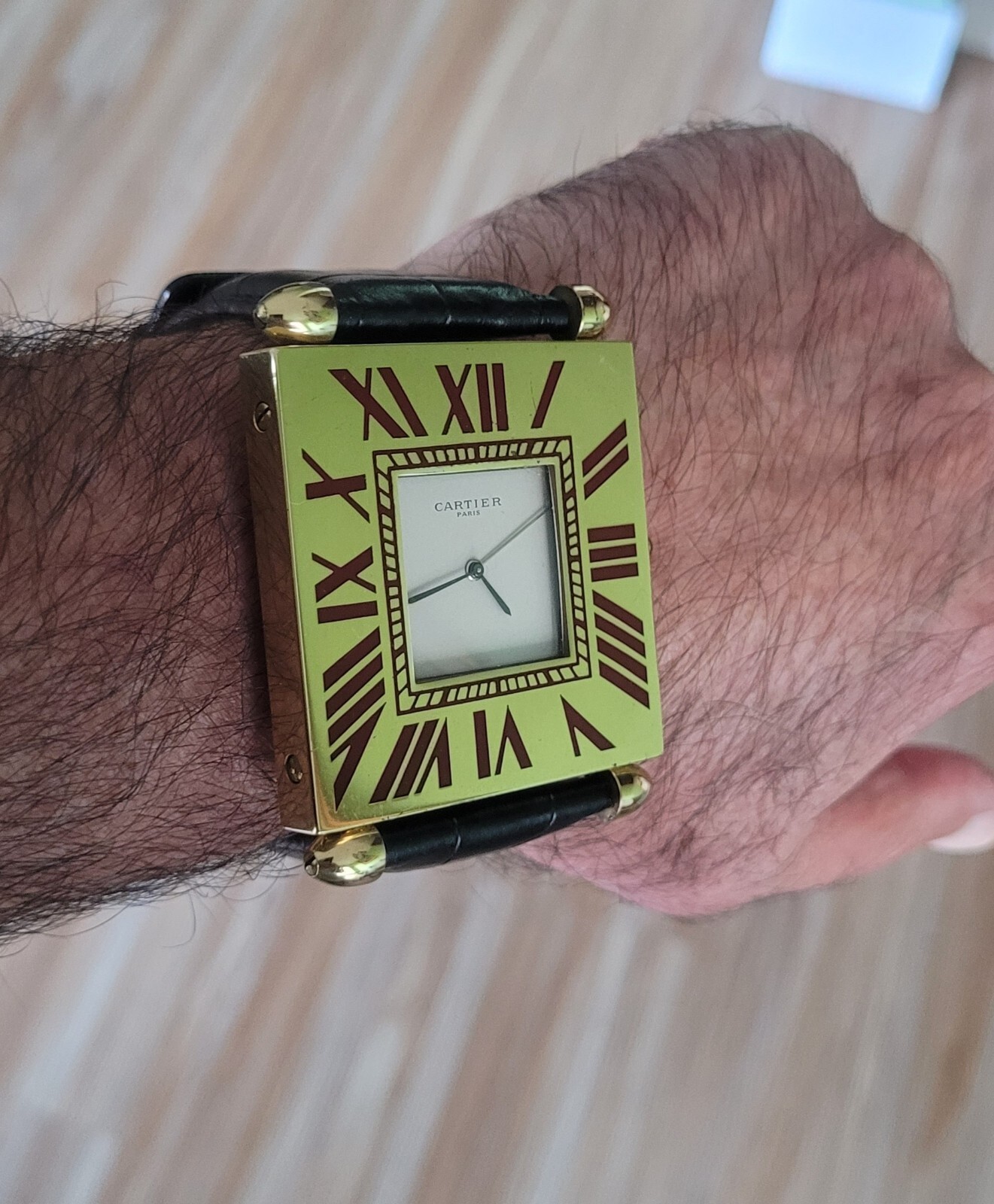 100% Authentic Cartier with red enamel Roman numerals and red cabochon crown. A great idea , made of a vintage Cartier Paris mini desk clock we just put a fresh SWISS battery in it and runs perfect lots of compliment when worn, looks like a 50 k $ watch use it as a wrist watch or sit in as a desk clock a great price you see it you Love it, please read and see all large size pictures and the size and make sure of your purchase