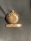 Add a touch of vintage charm to your home with this cast metal sun face wall mount hook. Dating back to the 1990s, this piece is a testament to timeless style and functionality. The rich copper color adds a warm and inviting aura to any room, while the sturdy metal material ensures durability and longevity. Perfect for use in the kitchen, bathroom, or any other room that needs a touch of organization, this ODI-made hook is a must-have for any collector of vintage hardware. Whether you're looking to add to your collection or simply need a reliable and stylish hook, this piece is sure to impress.