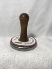 Add a unique touch to your holiday treats with this vintage Nordic Ware cookie stamp. The round stamp features the text "TO: AND FROM:" in a festive font, making it perfect for personalizing your Christmas cookies. Measuring approximately 3" in height and width, this stamp is made of wood and metal and comes with a convenient handle for easy use. In addition to being a fun and nostalgic addition to your baking tools, this Nordic Ware cookie stamp is also reusable, making it an eco-friendly choice. Whether you're a collector of vintage kitchen items or simply looking for a special way to add some personality to your holiday treats, this cookie stamp is sure to delight.