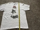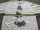 This Vintage Cat Shirt for Men in size Large is a charming piece from the 90s, featuring a cute graphic print of a kittens. Made from comfortable cotton material, this short sleeve shirt with a crew neck is perfect for all seasons and is machine washable for easy care. The vintage feel and 90s theme make it a unique addition to any wardrobe, especially for those who love cats and funny designs. Whether for a casual day out or lounging at home, this shirt is sure to bring a touch of nostalgia and whimsy to any outfit. There is some yellowing on the shoulder and a small hole in the front.