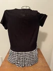 Cute cute cute Cato black and black check tee type shirt. Snaps on front with checkered ruffle bottom. Size small and New with tags. Length is 27 inches and width arm pit to arm pit is 20 inches. Machine washable too! Just a fun shirt! From a nonsmoking home The shirt in the pictures the one I will mail 🌸