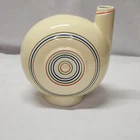 This vintage ceramic liquor decanter set is a must-have for any barware collector. The set includes a decanter, shot glass, and a lid/stopper, all of which are beautifully crafted with a circular pattern in multicolor. The set is made of ceramic and porcelain, and has a mid-century modernism style that adds a touch of elegance to any bar. The set is an original and comes with a cover included. It is recommended to hand wash only to maintain its quality. The decanter set is perfect for serving liquor, sake, whiskey, or tequila, and is sure to impress your guests. Bar ware Sake decanter Whiskey decanter Tequila decanter Shot glasses Item will be shipped promptly and packaged with care.