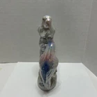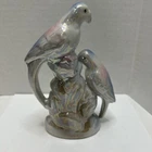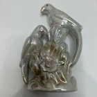 Crafted with meticulous attention to detail, this vintage ceramic figurine showcases a charming pair of love birds, opalescent in a soothing white with delicate blue and pink accents. The glazed finish enhances the exquisite multicolor design, bringing a touch of nature's grace to any setting. Measuring 7 inches in height and 4.5 inches in width, this mid-century piece from the 1950s is a testament to the timeless elegance of bird-themed collectibles. Weighing in at a sturdy 9.8 ounces, it's the perfect size to adorn a mantel, shelf, or to add a romantic flair to your home décor.