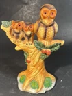 Vintage Ceramic Owl Family Perched Sitting on Tree Branch Figurine Cottagecore