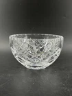 Vintage Cexkci Ceska Czech Hand Cut Crystal Bowl Diamond Stars Fans Pattern 5.75 5 3/4" diameter and 3 1/2" deep. Acid etched signed on bottom.