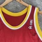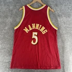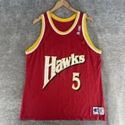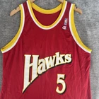 Own a piece of NBA history with this vintage Champion Atlanta Hawks jersey featuring Danny Manning. This men's size 48 medium red jersey is perfect for basketball fans and collectors alike. Show your support for the Hawks during the regular season with this authentic piece of fan apparel. Small hole in back. SUPER RARE