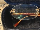 X CHANEL CLASSIC OVAL RIMLESS EYE GLASSES with GOLD CC LOGOS . Comes with CC logo box. Condition: Vintage E xcellent. Minor signs of wear. Made in Italy Color - 155 Size: 54-19 130 Hinge to hinge - 125 mm (spring hinges) Lens vertical - 33 mm Temples - 130 mm Composition: 24K Gold plated metal Please ask any questions before bidding Track Page Views With Auctiva's FREE Counter