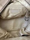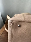 Vintage Chanel Caviar Beige LAX Bowler Bag. Near excellent pre owned condition. No marks on the inside lining. There is very slight wear on the straps and bottom of bag in the corners. The leather on the straps are in great condition. However, what is used the make the straps feels stiff under the leather. Only noticeable to whoever is carrying the bag. Overall this bag is in very great shape. If you wanted to get the straps restored it would be in excellent pre owned condition.