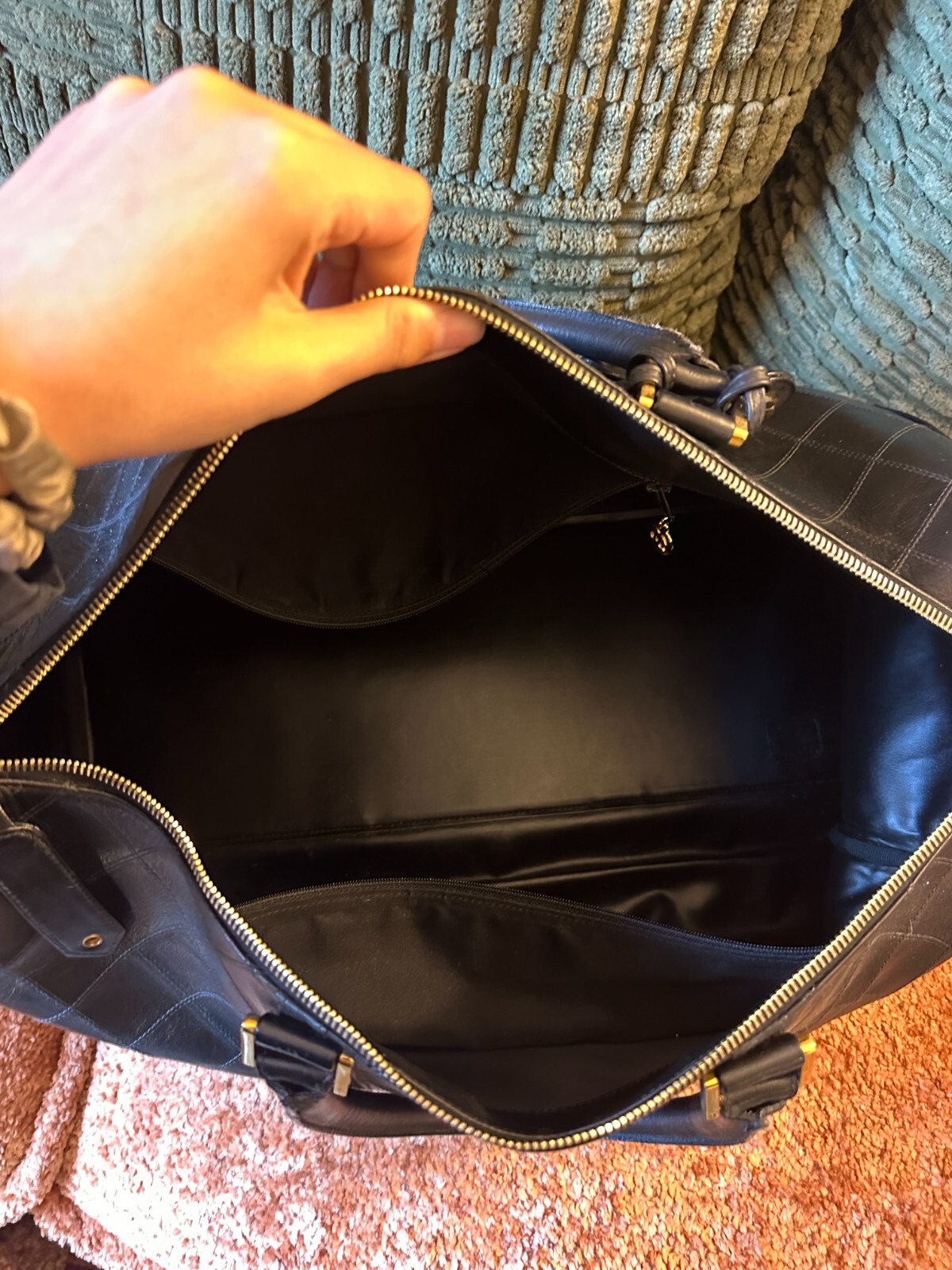 Absolutely love this vintage Chanel duffle! The lambskin is buttery soft, and the quilted detailing is flawless. The gold hardware adds a luxe touch, while the spacious interior fits all my daily essentials. Perfect size for travel or everyday wear—timeless, elegant, and so chic. Feels like wearing a piece of fashion history!