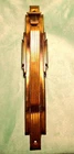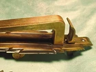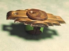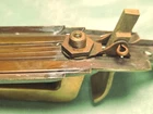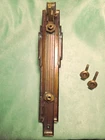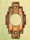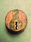 Original vintage Chantrell brass exterior door hardware set with matching pull handle plate and lock escutcheon. Strong stepped Art Deco design with linear detailing and substantial architectural presence. Stamped “Chantrell” on the lock cylinder, adding maker identification and collector appeal. Likely dates to the late 1920s to 1930s with a classic machine-age look suited for restoration projects, Art Deco homes, statement garden gates, architectural salvage collections, or creative repurposing. Beautiful aged brass patina throughout with oxidation, scratches, weathering, and wear consistent with vintage exterior use. Includes: Long exterior pull handle plate 2 1/8"w x 11"L CTC: 5 5/8" Original bolts/door thickness: 1 5/8-3/4" Lock cylinder: 1 1/4" Dia x 1 3/8" D Matching lock escutcheon with Chantrell marked cylinder Meas: 2"W x 3 5/8L x 1/4" D Original aged brass finish Condition: Vintage condition with visible wear, tarnish, scratches, oxidation, and patina from age and outdoor exposure. Lock component is untested. Please review all photos and measurements carefully. Chantrell Art Deco door handle brass exterior entry hardware Vintage architectural salvage brass pull handle lock escutcheon