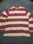 This Vintage Chaps Ralph Lauren XL Striped Rugby Long Sleeve Shirt is a classic piece of men's clothing with a retro 90s theme. The multicolor striped design, collared neckline, and button-up closure make it suitable for casual occasions. Made of cotton knit fabric, this shirt is machine washable for easy care. The embroidered accents and vintage branding add to its charm, perfect for those looking for a unique and stylish addition to their wardrobe. 160