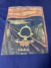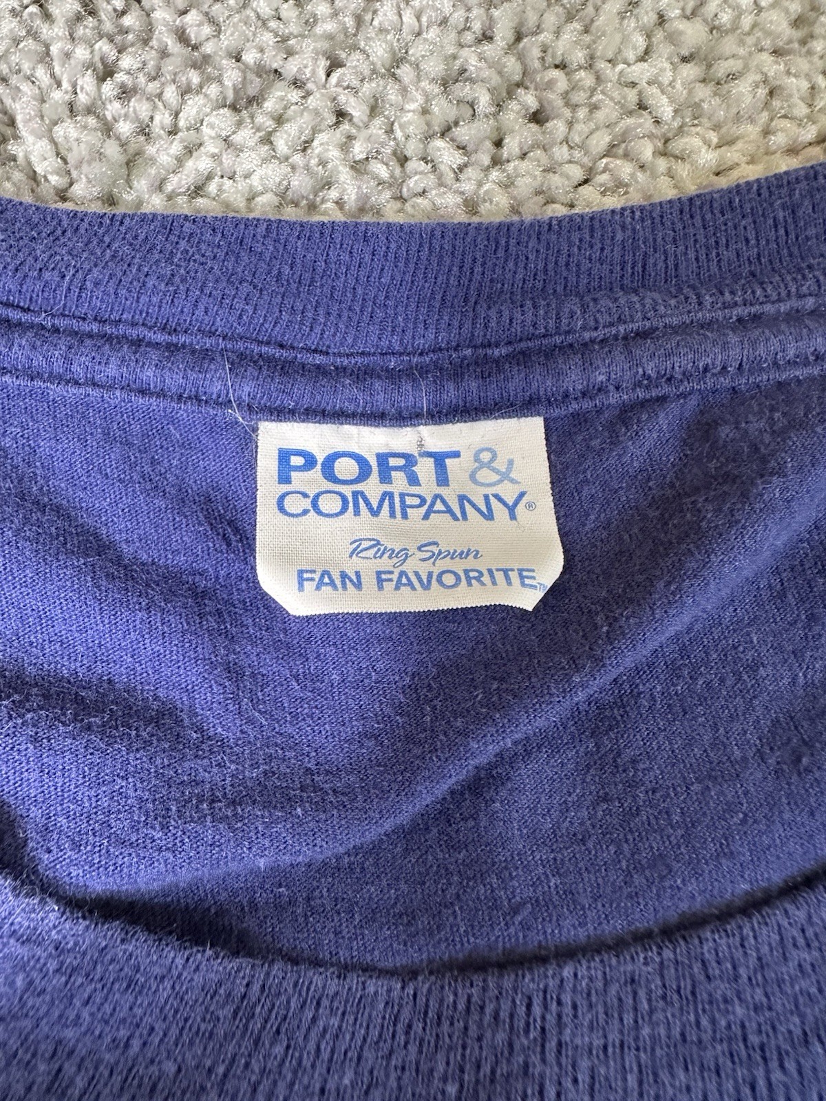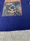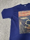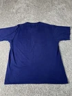 The Vintage Charlie Brown T-Shirt in size 2XL is a classic blue shirt featuring a graphic print of Charlie Brown screaming, perfect for fans of the 80s theme. Made from a comfortable cotton blend knit fabric, this short sleeve shirt has a crew neck and is machine washable for easy care. The Port Authority brand adds a touch of authenticity to this vintage piece, making it a unique addition to any man's wardrobe. 2367