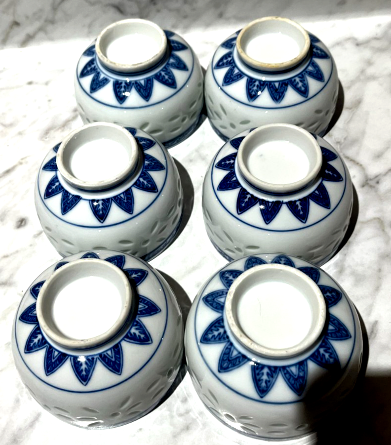 This set of 6 Vintage Chinese Porcelain Tea Cups features a classic blue and white Rice Grain Pattern, adding a touch of elegance and tradition to your tea-drinking experience. Each cup is handmade, showcasing the craftsmanship and artistry of Chinese porcelain making. Perfect for collectors or enthusiasts of Asian cultures and ethnicities, this set is a unique addition to any tea set collection. Enjoy your tea in style with these beautiful and timeless cups.