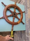 Vintage Wood Chris Craft 24" Steering Wheel 6 Wood Spokes Brass Center Plate 1" Square Hole. In very nice preowned condition. Shows signs of use and wear normal with age. See pictures and ask questions for more details Pictures serve as additional description. Very nice ships fast via your choice USPS Priority or Parcel Post Mail.