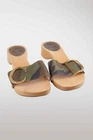 The product is a pair of vintage Christian Dior mule heels in a camouflage pattern, featuring a wooden outsole and insole. These size EU35.5 heels are specifically designed for women and exude a stylish and unique look. The camouflage design adds a trendy touch, while the wooden construction gives them a classic and timeless appeal. Perfect for adding a touch of vintage charm to any outfit, these Dior mule heels are a must-have for any fashion-forward woman. Condition: Excellent vintage condition , any/all noticeable flaws will be clearly photographed/noted Heel Height: 3.5cm Composition: Leather and Wood Marked Size: EU35.5, insoles measure 23cm