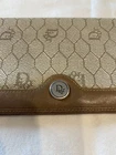 This Christian Dior Vintage Honeycomb PVC & Leather Bifold Long Wallet is a stylish and elegant accessory for women. Made with a combination of canvas and leather materials in beige and tan colors, this wallet features the iconic monogram logo of Christian Dior. The vintage design adds a touch of sophistication, with the honeycomb theme adding a unique and intricate detail to the overall look. With its folding style and convenient size of 3 1/2" in length and 7 1/4" in width, this wallet is both practical and fashionable, making it a perfect addition to any fashion-forward woman's collection. Preowned- good/fair condition. Slight signs of wear on outside and inside of wallet as seen in pictures. Slight rip on the seam of the checkbook side of the wallet pictured. This can easily be fixed at Christian Dior or a local cobbler you trust. Pen mark noted on wallet (as seen). Overall, still really good condition considering this wallet is a vintage piece. Wallet still has yearsss of life left. Get this iconic wallet for an amazing price!!! Comes with entrupy certificate of authenticity.