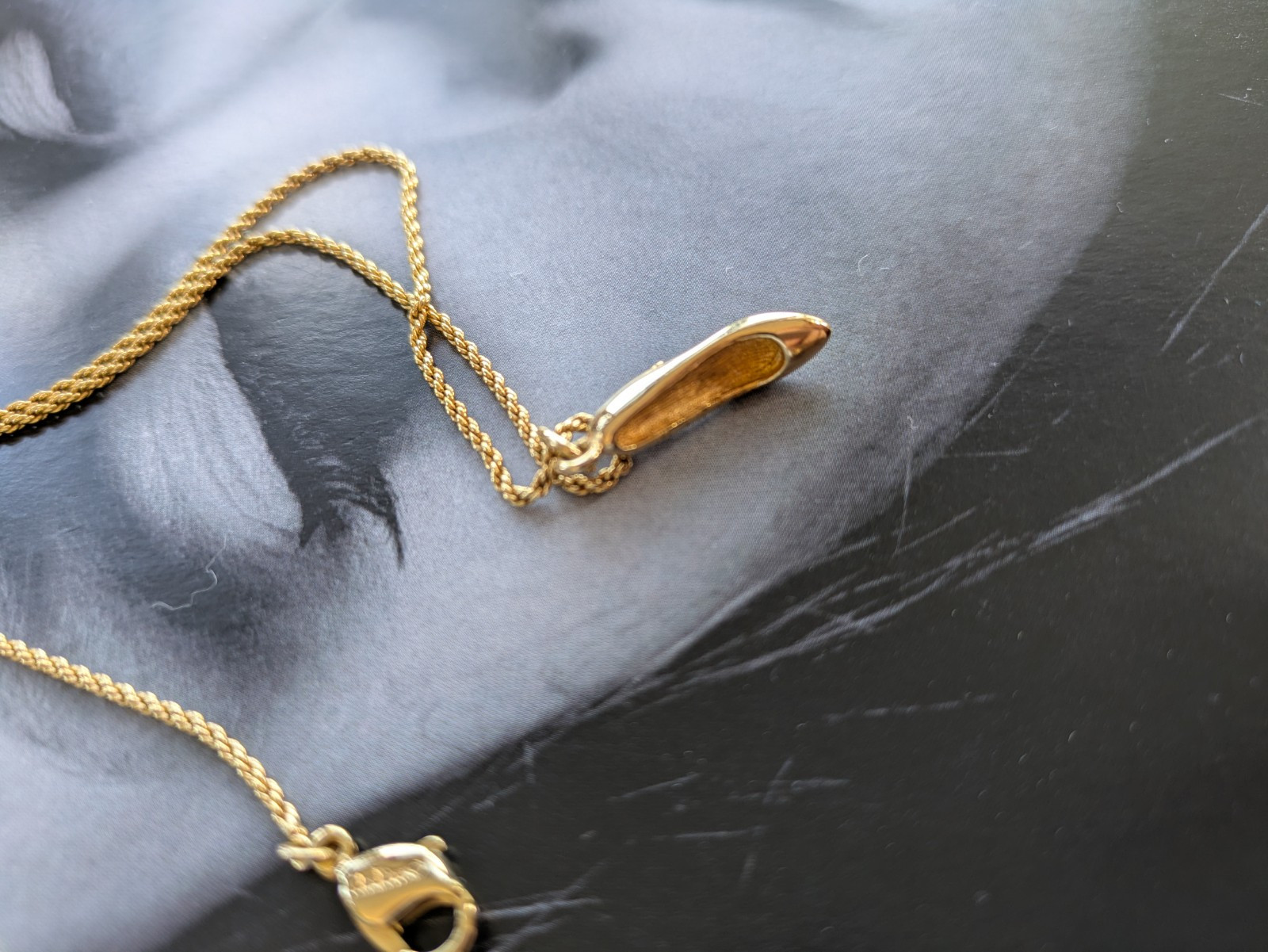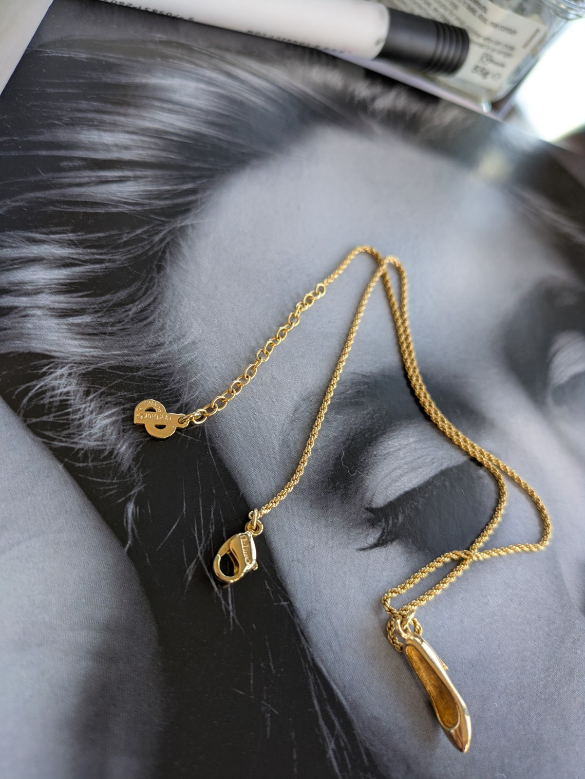 Elegance is timeless, and this Christian Dior Vintage Necklace encapsulates that thought perfectly. A classic pendant style, it's a quintessential addition to any jewellery collection, boasting an adjustable chain for a fit that's just right. The design features exquisite rhinestone details, catching the light to add a touch of sparkle to your ensemble. Crafted with a gold colour that complements any outfit, this necklace's theme is firmly rooted in vintage charm. While the exact country of origin and material remain a mystery, its allure is undeniable. A statement piece from the esteemed house of Dior, it's a piece that carries the essence of sophistication and history.