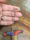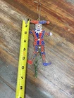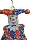This vintage Christmas ornament features a jester character in a harlequin design, made of enamel and metal materials. The articulated nature of the ornament adds a unique dynamic element to its vintage charm. Perfect for collectors or those looking to add a quirky and whimsical touch to their holiday decor, this ornament is a fun and nostalgic addition to any Christmas tree. The hanger could stand to be replaced.
