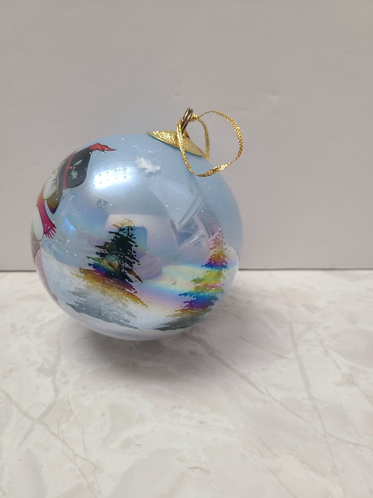 Vintage Christmas Ornament Reverse Painted Santa Claus Snowman Children