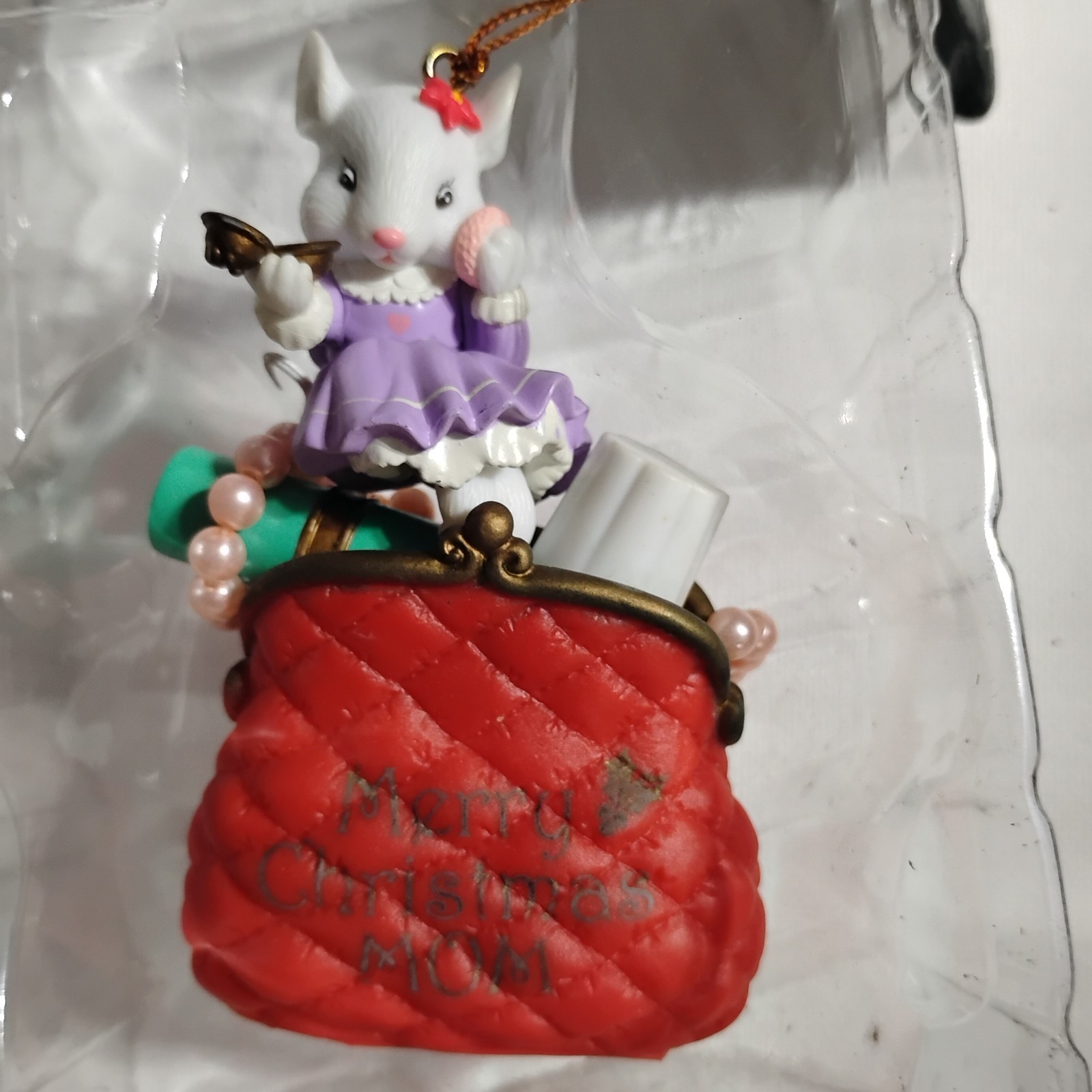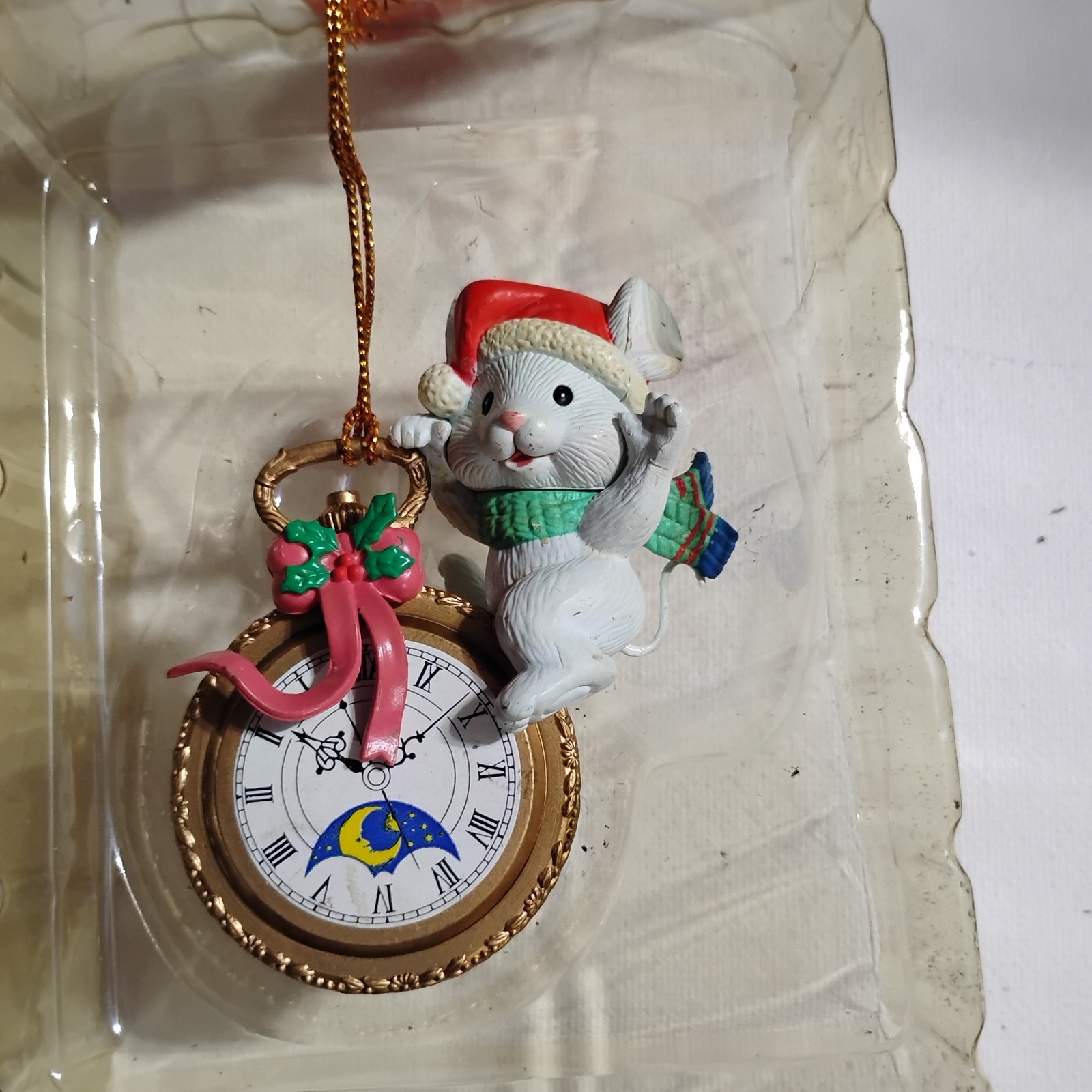 This product is a lot of 4 vintage Christmas ornaments from the 1980s by the brand Trim A Home. The ornaments are small in size, made of resin, and feature mice as the subject. They are part of a collection of ornaments with a retro 1980s theme, and are new in original packaging (N.O.S.). These collectibles are perfect for adding a nostalgic touch to your holiday decor, and they were manufactured in China during the specified time period.