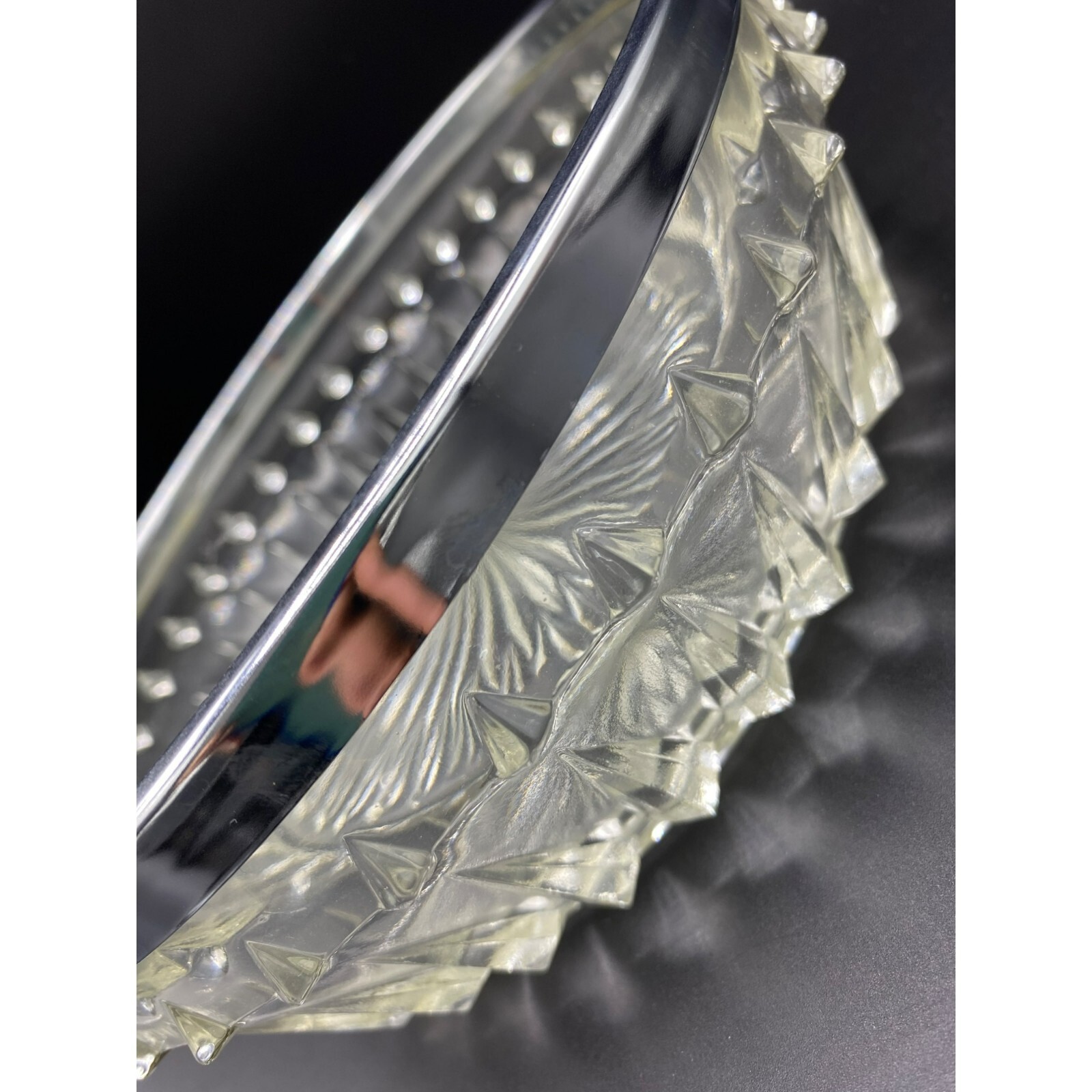 Vintage Pressed Glass Chrome Rim Serving Bowl 8 1/2" D No chips or cracks excellent condition