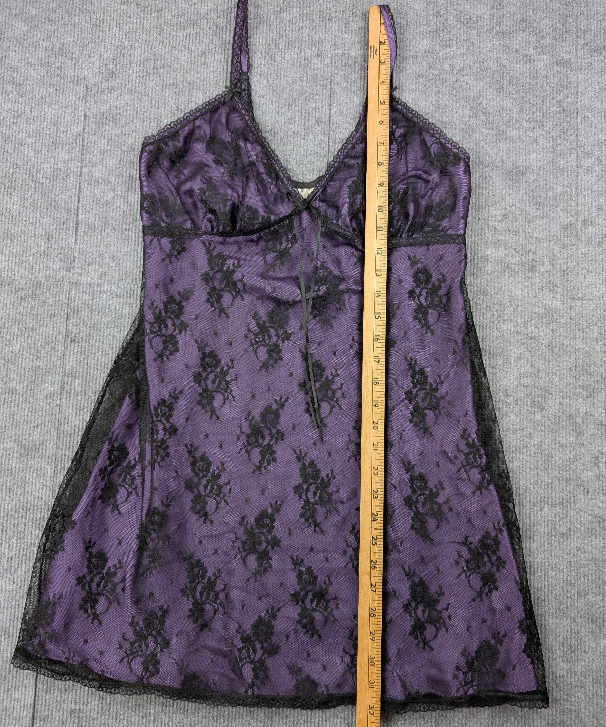 Brand: Cinema Etoile Department: Women Type: Slip Dress / Chemise Size: M (approx – see measurements) Color: Purple & Black Style: Lingerie Slip Material: Mesh / Lace (feels like nylon blend) Pattern: Floral Lace Sleeve Length: Sleeveless – spaghetti straps Closure: Pullover Features: Sheer, lace overlay, adjustable straps, bow accent Occasion: Intimate, sleepwear, Y2K aesthetic Condition: Pre-owned, good condition