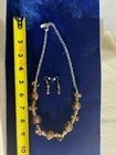 Crafted with a vintage touch, this beaded necklace features faceted glass stones in a vibrant citrine hue in various shades. Complemented by a matching pair of pierced earrings, this set adds a touch of retro elegance to any ensemble. The lobster clasp closure ensures a secure fit for daily wear or special occasions. The citrine colored beads are highlighted by the subtle shine of the metal spacer bead and chain. Accent beads are thread with metal pins as well. Whether you're dressing up for an event or accenting your daily look, this necklace and earring set is a timeless addition to your collection. Does have a branded tag see photos.