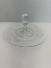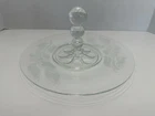 Vintage Clear Glass Bubble Handle Decorative Serving Tray Etched Flowers 11”