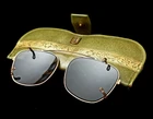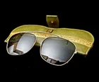 Vintage Clip-on AVIATOR Sunglasses GLASS LENSES w Leather PRINCESS GARDNER Case Gold-filled frame and charcoal GLASS lenses! SIZE: 48