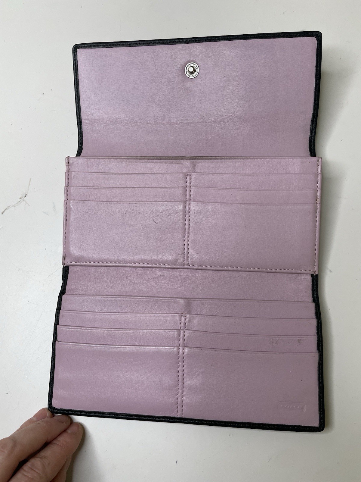 Vintage Coach Black Leather Bifold Wallet Clutch Button Snap 7.5”x4”