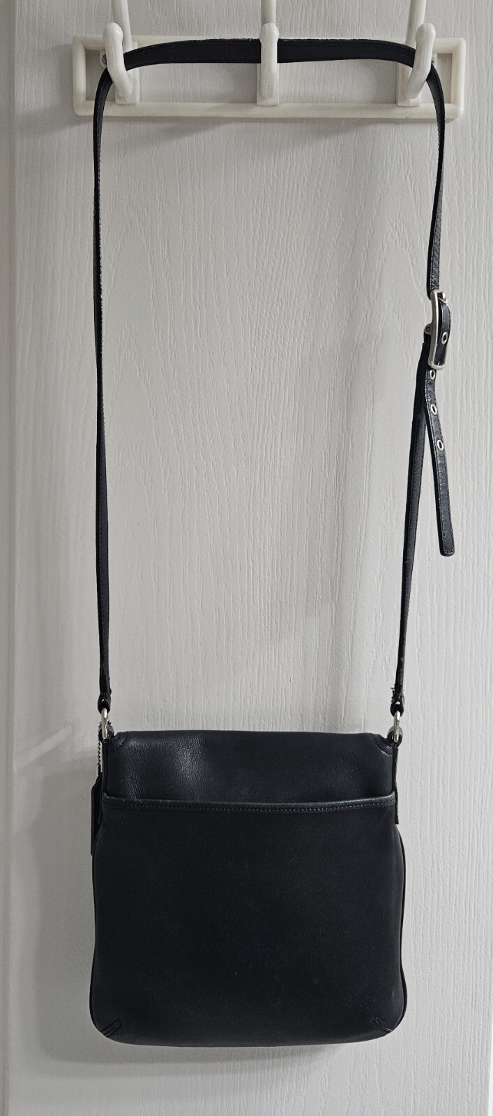 Up for auction is a VINTAGE COACH BLACK LEATHER SHOULDER CROSSBODY BAG-#9592, The bag itself is in pretty good condition with some scuff marks on both the front & back. The adjustable shoulder strap shows quite a bit of wear, but I think the bag still has a lot of life left in it. Please see photos showing condition. It measures approximately 9" top to bottom x 9" wide (side to side). Inside is a zippered pocket & 2 smaller slip pockets. It has a snap closure. Coach bags are known for being sturdy & long lasting. I t comes from a smoke free home. Please feel free to email me any questions regarding this auction prior to the end of the auction . Buyer to pay shipping costs. I will refund your money ONLY if I have misrepresented the item in my description. I try to give a very honest and detailed description. Please give me the courtesy of sending payment within 3 days of the close of this auction. Thank you for your cooperation. Good luck and thanks for viewing my auction. Please take a moment to view the other great items I have listed.