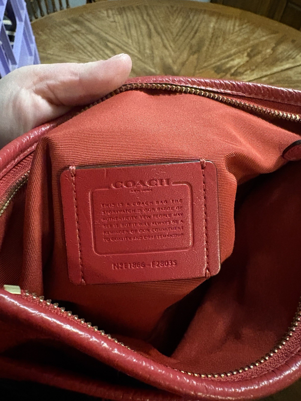 The Vintage Coach Legacy Red Leather Mini Crossbody Bag Purse 6610 is a stylish and timeless accessory for women. Made of red leather with silver hardware accents, this square-shaped purse features a zip and buckle closure, adjustable crossbody strap, and a unique bag charm. Perfect for both casual and party occasions, this small-sized bag exudes a vintage charm with a hint of Y2K and minimalist aesthetics. A classic piece from the Coach Legacy collection, this purse is a versatile and trendy addition to any wardrobe.