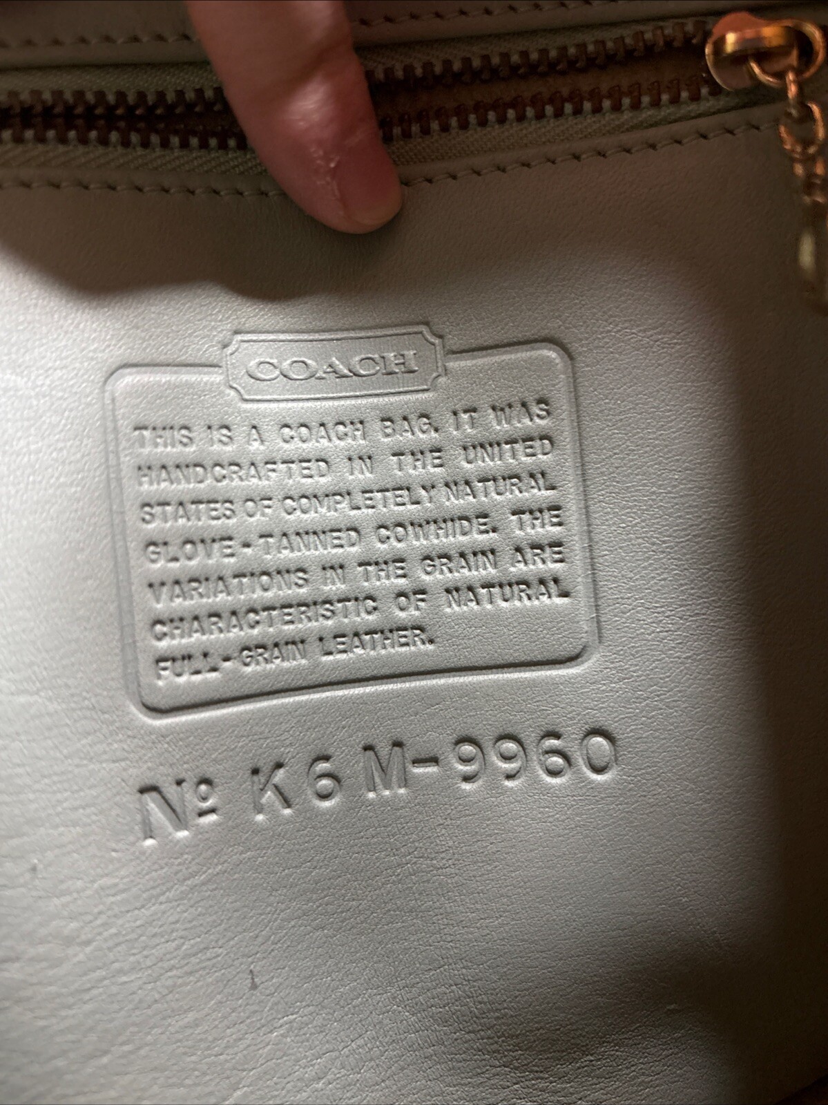 This bag has the original hang tag and comes with everything shown in the pictures. There is what appears to be a watermark on the side shown in the picture,. this bag is in great condition. **This a vintage Coach purse. These purses have been preloved and worn. As this any item that is vintage there may be stains, frays, color fading. Please review photos to verify the condition and look of bag before purchases. Flaws will be disclosed in photos and description to the best of my ability **All purses sold are authenticated **Feel free to message me with any questions. **Returns of items are accepted within 30 days, buyer pays return shipping **Thank you for viewing my listing, please follow and check out my store for more vintage Coach and other items.