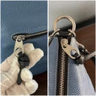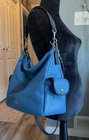Chic and versatile rare find Coach Pennie shoulder and crossbody bag. Crafted in rich blue pebbled leather with navy blue accents. Ideal for everyday elegance. DETAILS: Refined pebble leather Zip-top closure, fabric lining Inside zip pocket Outside zip and snap pockets Detachable shoulder/ handle strap (18” long and 7" drop) Detachable crossbody strap (36 to 43” long) Bag height- 11” Width- 10.5” Depth (base) - 6.5” Condition: Pre-owned with some tiny wear overall in very good condition. Please check ALL photos and descriptions carefully before purchasing.